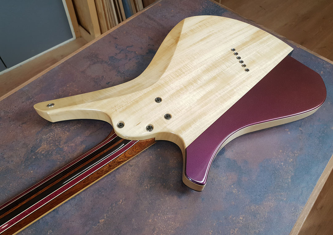 Corps en tilleul, manche 13 pièces (amaranthe, acajou, wenge, erbale), touche en pao ferro.