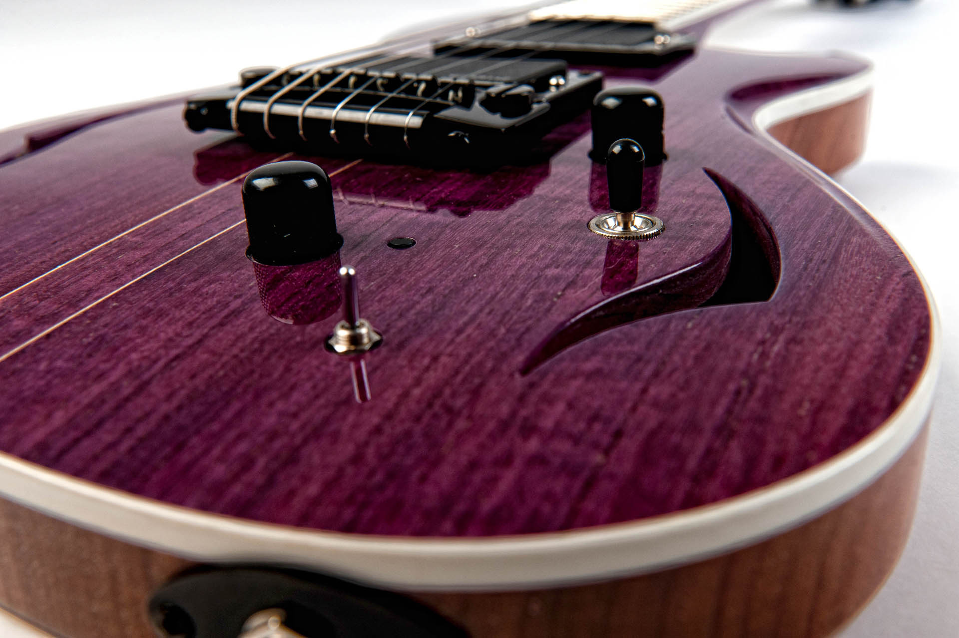 Table en amarante (couleur naturelle), corps creux en sipo, touche en ébène, manche 5 pièces en acajou et érable.