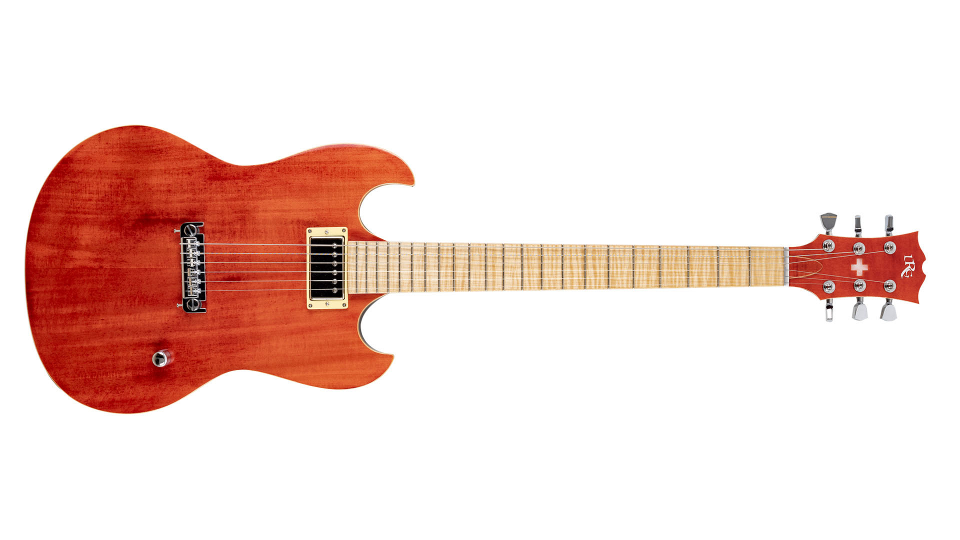 Corps en tilleul avec faux-filets, manche en érable, touche en érable ondé et incrustations en nacre.