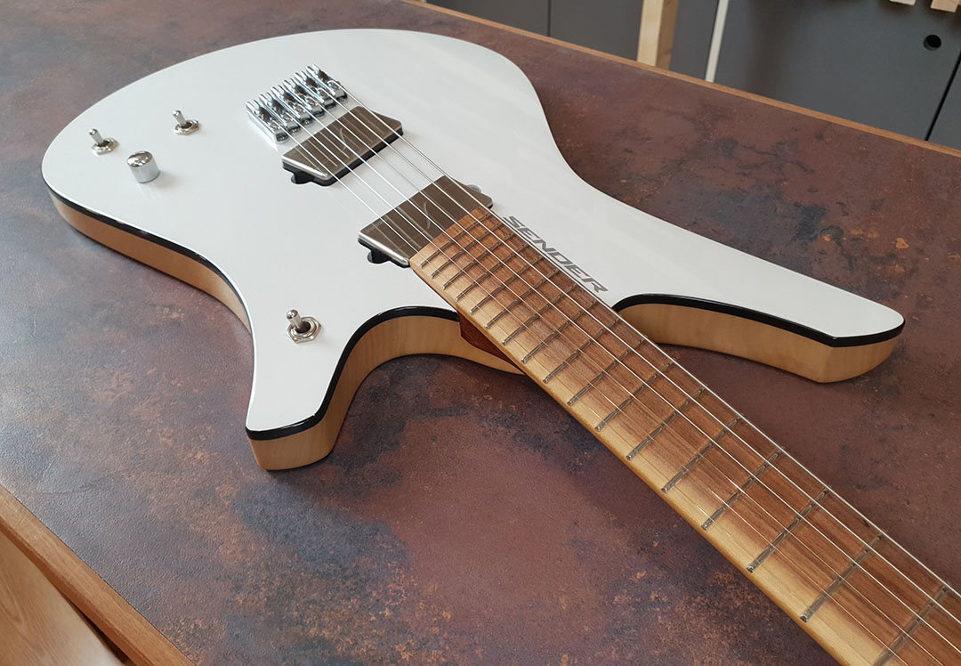 Corps en tilleul, manche 13 pièces (amaranthe, acajou, wenge, erbale), touche en pao ferro.